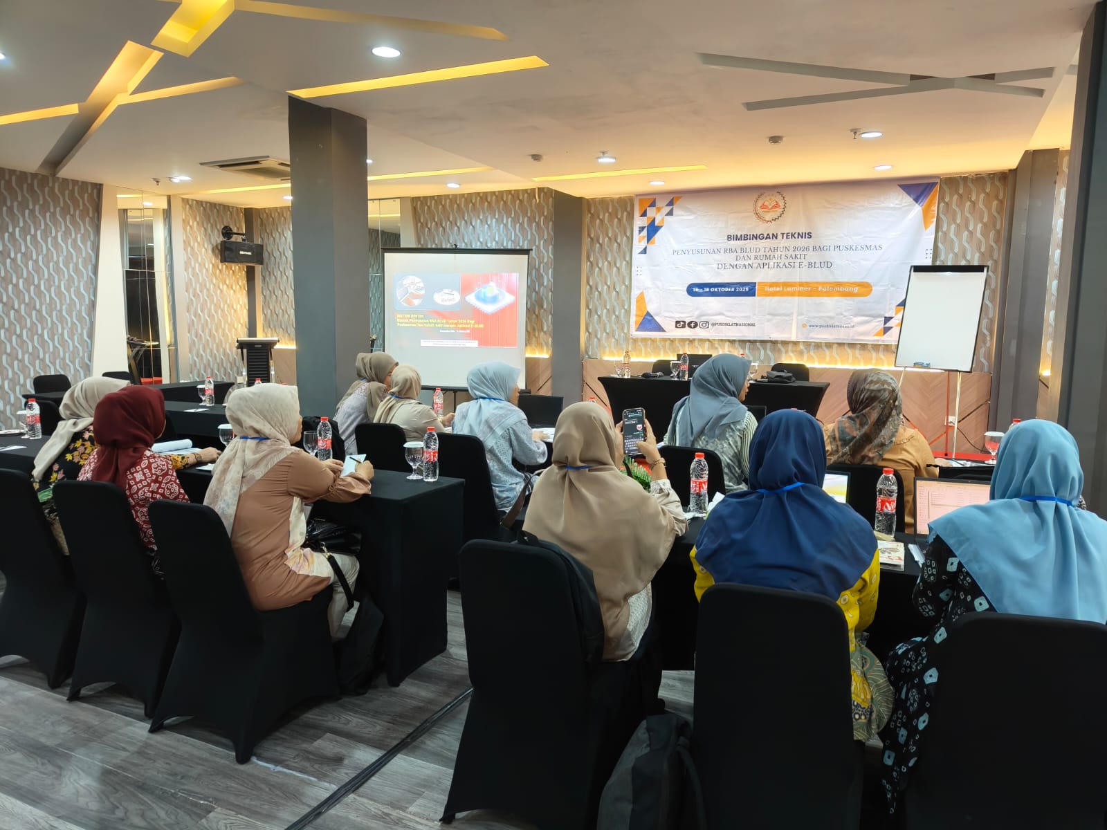 Keterangan Gambar : Bimbingan Teknis Penyusunan RBA BLUD Tahun 2026 Bagi Puskesmas dan Rumah Sakit dengan Aplikasi E-BLUD Hotel Luminor Palembang 15-18 Oktober 2025