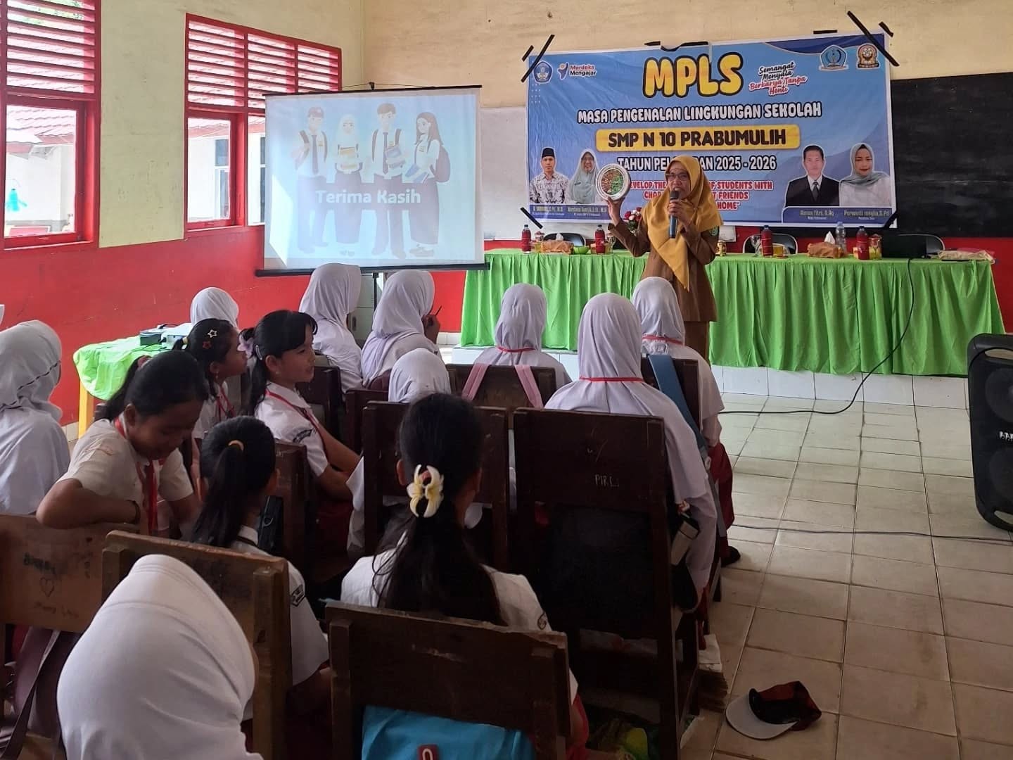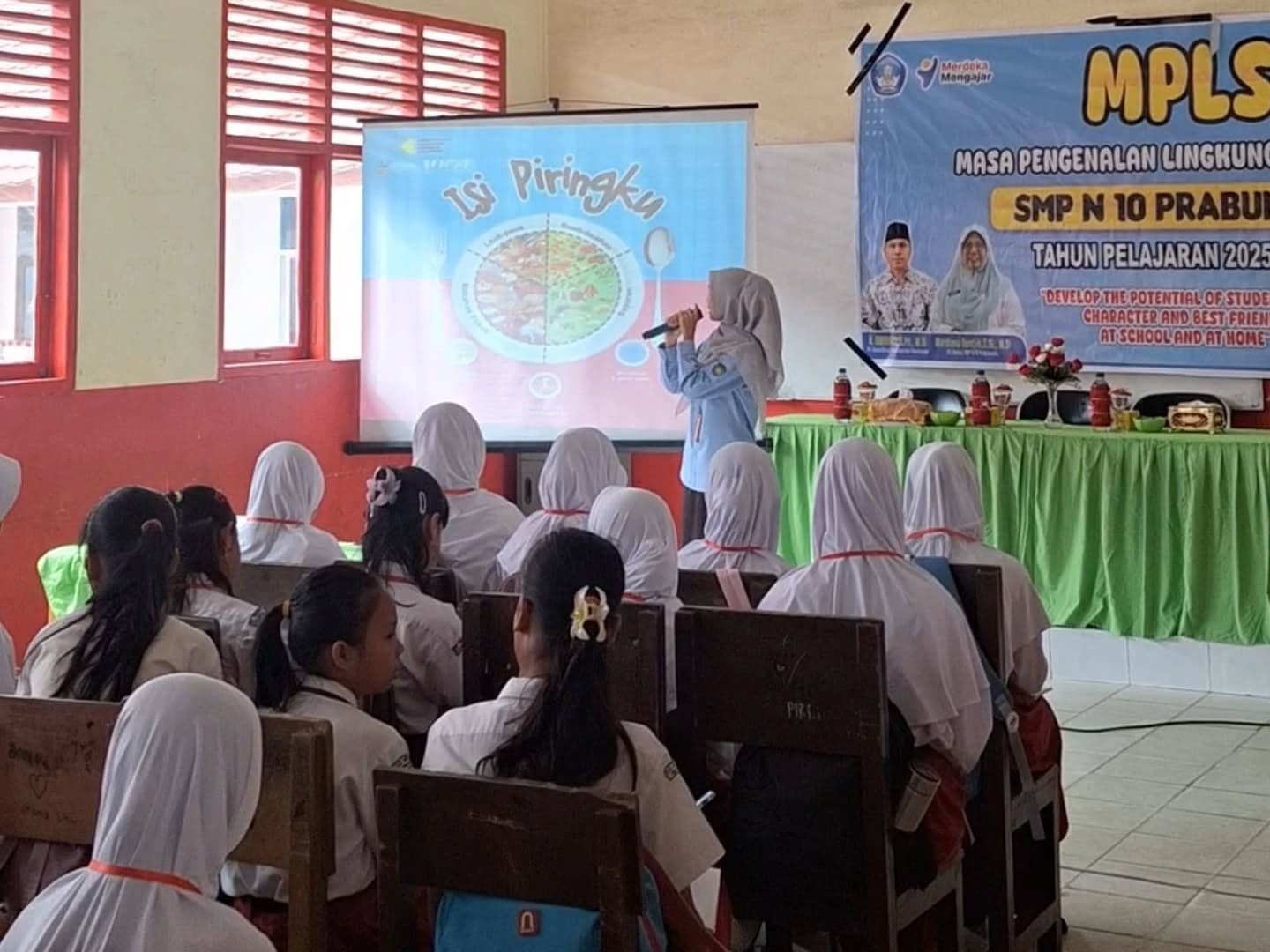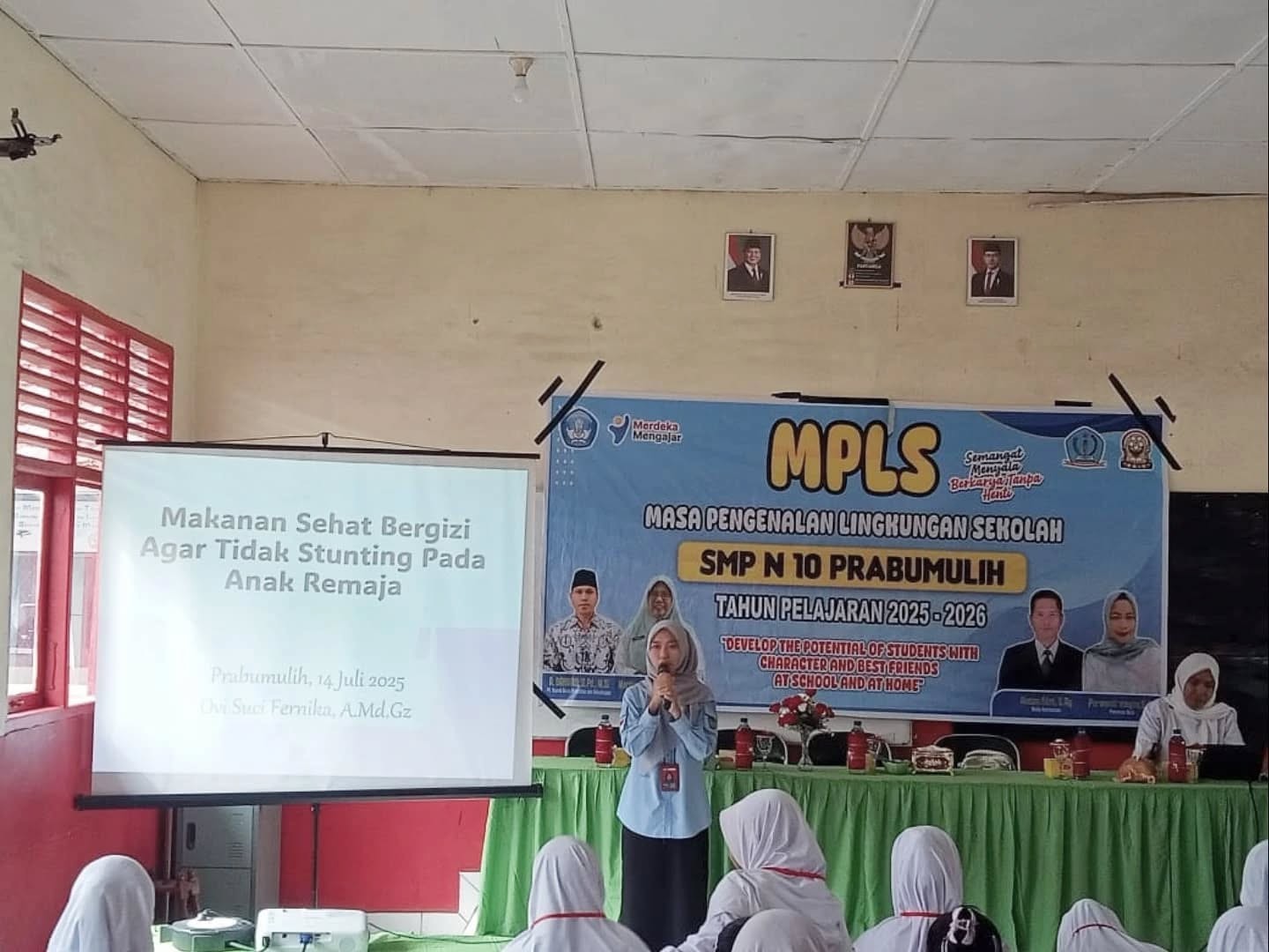 Pengisian Materi oleh Staf Puskesmas Cambai pada kegiatan Masa Pengenalan Lingkungan Sekolah (MPLS) Makanan Sehat Bergizi Agar Tidak Stunting ????SMP N 10 Prabumulih ????Senin, 14 Juli 2025